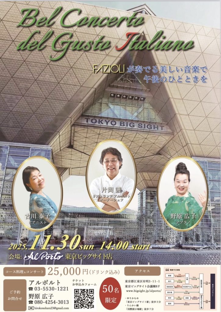2025/11/30(日)14:00~ 野原 広子 Bel Concerto del Gusto Italiano, FAZIOLIが奏でる美しい音楽で午後のひとときを