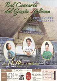 2025/11/30(日)14:00~ 野原 広子 Bel Concerto del Gusto Italiano, FAZIOLIが奏でる美しい音楽で午後のひとときを”イタリアの味の美しいコンサート”