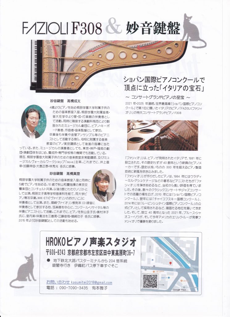 2025/12/6(土)14:30~ 妙音鍵盤 FAZIOLI F308 ピアノコンサート